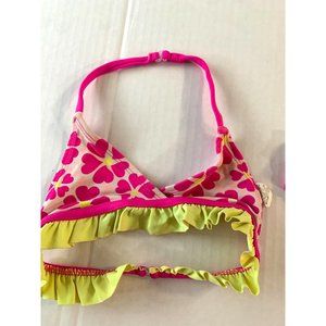 OP Ocean Pacific Girls Infant baby Toddler 24 months 2 Pc Swimsuit Beach Pool Bikini Pink Yellow Hearts ruffle