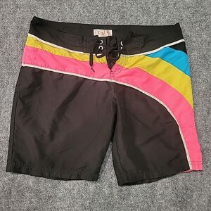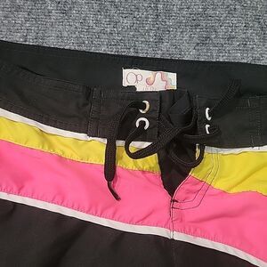 OP Ocean Pacific Swim Board Short Size 11/13 L Stripe Colorful Tie Waist Surf