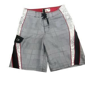 OP Ocean Pacific Swim Board Shorts Men's Size 30 Trunks Cargo Pocket Vtg. Plaid