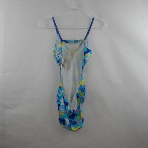 OP Ocean Pacific Tropical One Piece Swimsuit Juniors Size L (10/12) Swimwear Blue Yellow White (*SW001)