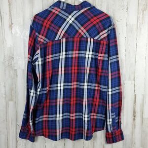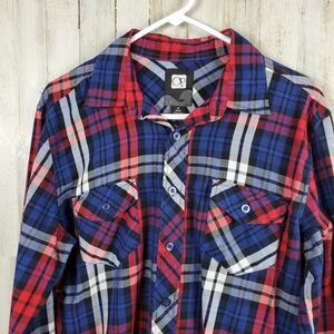 OP Plaid Button-Down Long Sleeve Shirt Blue Red Size Medium 38-40