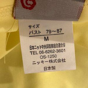 Ocean Pacific, yellow, girls medium, short sleeve, rashguard top. Purchased in Japan, Nylon 84%, Polyester 16%.