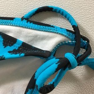 OP SX Women's Bikini Bottom Size 1 Turquoise Black Animal Print String Swimsuit in good condition