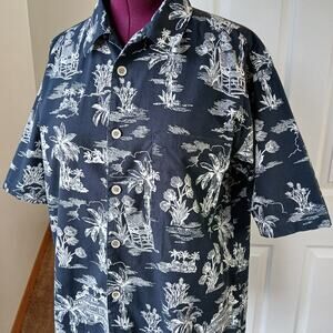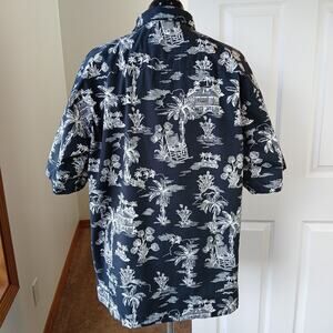 OP Sport Black & White Hawaiian Shirt Mens XL button up cotton camp short sleeve