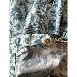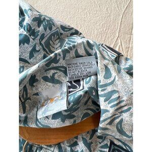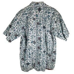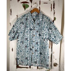 OP Sport Mens Size L Hawaiian Camp Shirt Blue Retro Print Cotton Blue Side Slits