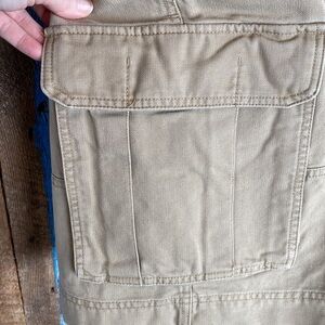 Her is a nice pair of OP Tan Cargo Shorts size 36 in good used condition. Measurements are approximately 9.5 inch inseam, 18 inch waist when flat and 22 inch length.