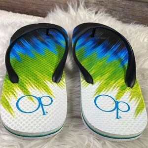OP Thong Flip Flops Sandals, Mens Size 9/10, Black,Blue, Green White