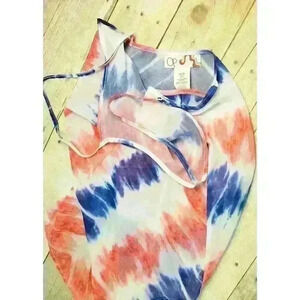 OP Woman RED WHITE & BLUE Sheer TIE DYE Beach Cover Dress Lightweight size Small