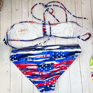 OP bikini string tie top red white and blue patriotic size L