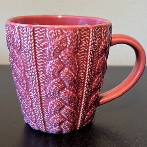OPALHOUSE Mauve Pink Embossed Cable Knit Sweater Stoneware Mug ~ Hygge