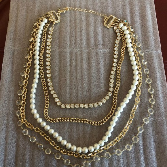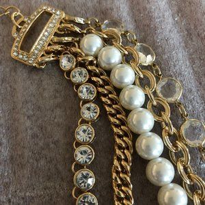 NWOT Signed OPC Multi Strand Faux Pearls, Crystals & Chains Statement Necklace
