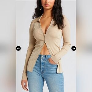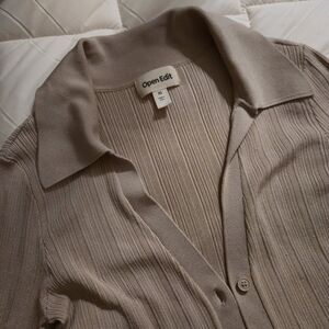 OPEN EDIT Collared Ribbed Cardigan
