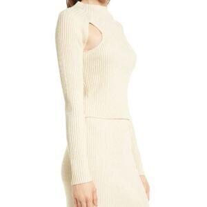 OPEN EDIT NEW $59 Sparkle Cutout Ribbed Knit Sweater in Ivory Small
