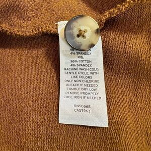 A great layering piece. Three button-down front. V-neck. Long sleeves. Ribbed, cuffs and neckline. Stretch material. Cotton blend.