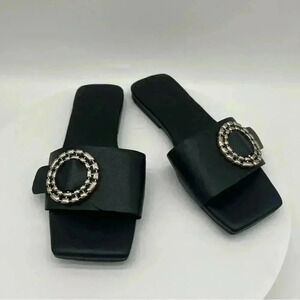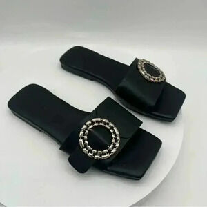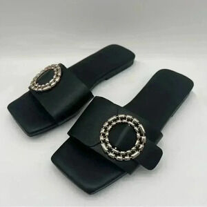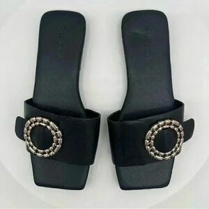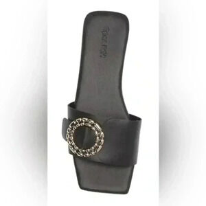 open edit sandals, black sandals, slide sandals, comfortable sandals, casual sandals, stylish slide sandals, size 7 sandals, easy-to-wear sandals, trendy sandals, summer footwear