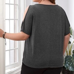 OPEN SHOULDER FEATHER PRINT TEE