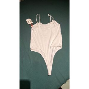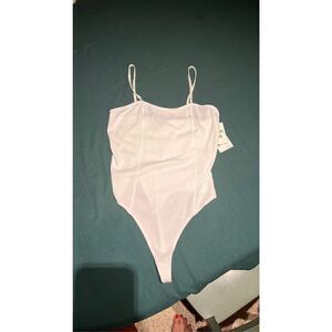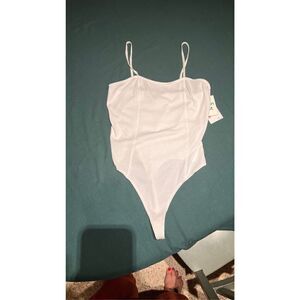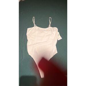 OPEN EDIT WHITE RIBBED BODYSUIT TOP WOMENS SIZE M NEW WITH TAGS
