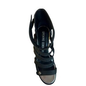 OPENING CEREMONY Black Leather Strappy Snap Button Wedge Sandal Size 7.5 /38