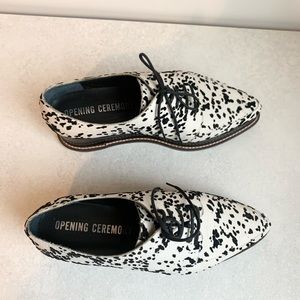 The cow print- the black specks are velvet raised with white leather . These are truly special!