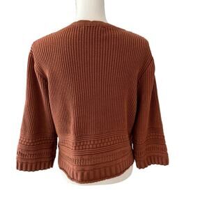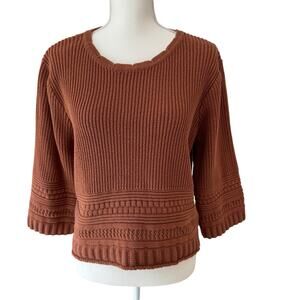 OPHELIA ROE Sweater Womens Large Rust Ribbed Crochet Boxy Boho