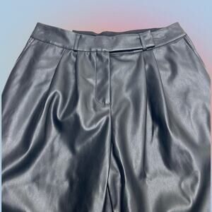 OPHELIA ROE Women’s 12 Black Faux Leather Pant HIGH RISE STRAIGHT PLEATED
