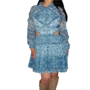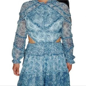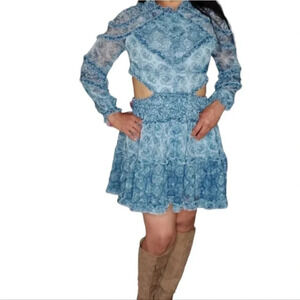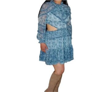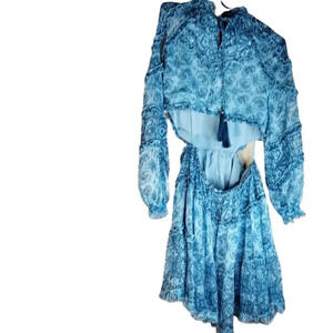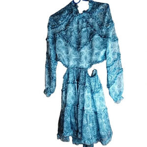 O.P.T. One Pretty Time. 100% Polyester. Size: Medium. Very Fun Blue with white Mini Dress! See Pictures for exact measurements and dress, also check out the video!