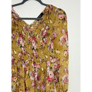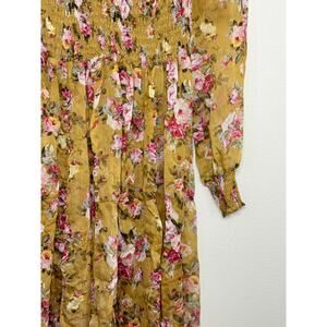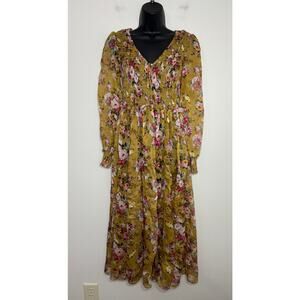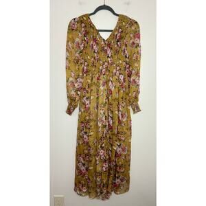 OPT Anthropologie Wick Dress Yellow Smocked Chiffon Floral Sheen Romantic, M