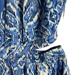 O.P.T. Blue Aztec Kaleidoscope Print Sleeveless Cut Out A-Line Midi Dress Size 6