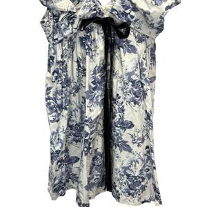 O.P.T Blue Floral Ruffle Mini Dress Cotton Lined Deep V Bow Detail Size XS