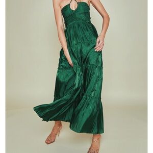 Step out in style with this chic emerald maxi dress. Its vibrant hue and flowing design make it a must-have for any wardrobe. Great for a fall or spring wedding!
