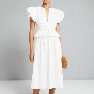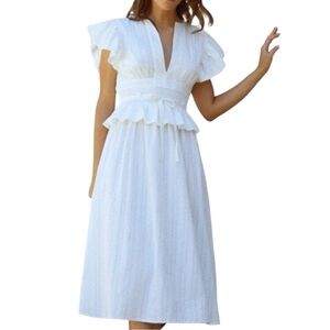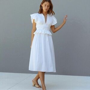O.P.T Chic White Midi cotton Dress with Ruffle Detail small New
