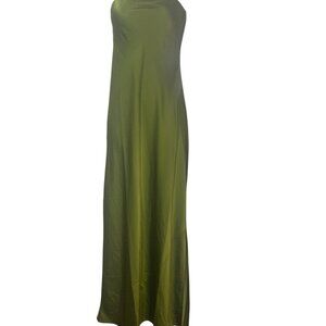 New with tags. Stunning O.P.T. (One Pretty Time) Marice Dress in Clover green. This elegant satin gown features a strapless neckline and a flowing full-length silhouette perfect for formal events, weddings, or special occasions. The dress is tailored in a sleek, body-skimming shape with a subtle diagonal seam detail. Please note: neck scarf is not included.