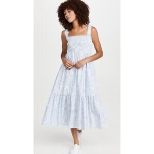 OPT Cotton Isla Dress Blue Paisley Print Sleeveless Smocked - L