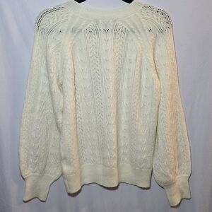 O.P.T Cream Wool Mohair Blend Open Pointelle Knit Balloon Sleeve Sweater, sz L