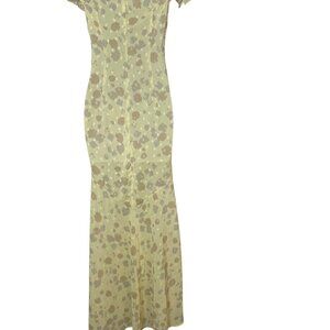 New with tags O.P.T. One Pretty Time “Gracia” Dress in Size 0. This elegant sheer chiffon overlay features a soft yellow floral print with delicate flutter ruffle sleeves and a floor-length silhouette. Completely sheer—designed to be worn over a slip or bodysuit (not included). A romantic choice for garden parties, beach weddings, or special events.