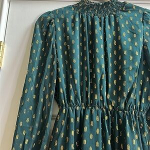 OPT Green Gold Mock Neck Mini Dress XS