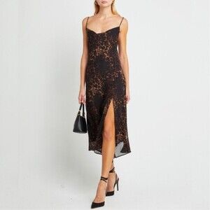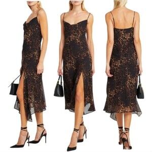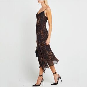 O.P.T Leopard Print Marzena Cowl Neck Slip Midi Dress