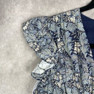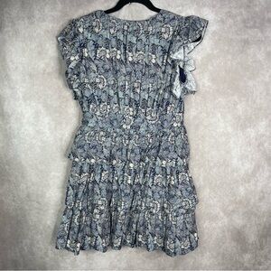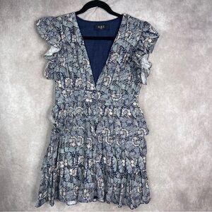 O.P.T Oliver Floral V-Neck Button Down Tiered Ruffle Mini Dress In Blue Size M