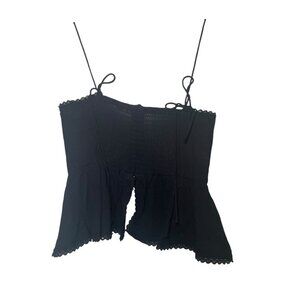 Keywords: OPT One Pretty Time Elodie Top, peplum blouse, black smocked back tank, bow tie straps, viscose summer top, romantic minimalist top