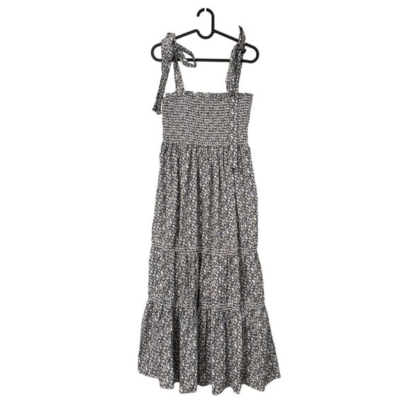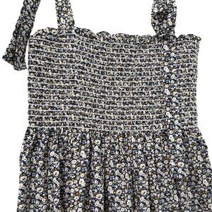 O.P.T One Pretty Time Navy Floral Smocked Tie Strap Tiered Midi Dress Large NEW