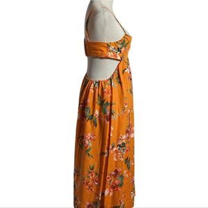NWT O.P.T Orange Floral Linen Blend Cut Out Maxi Dress