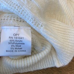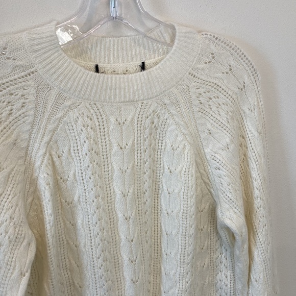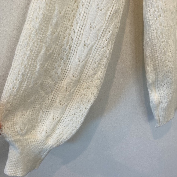 O.P.T. Pointelle Wool Mohair Ivory Balloon Sleeve Sweater
