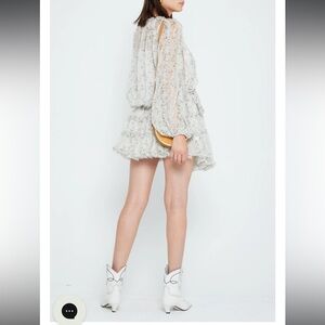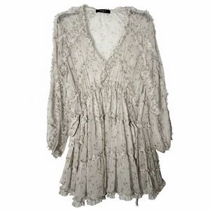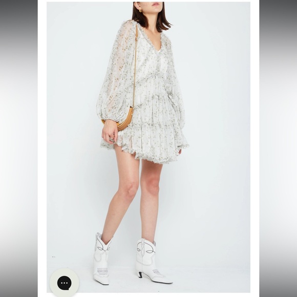 This floaty mini is done in a gorgeous floral chiffon. The matching slip and ruffled details adds dimension and elevates this style.