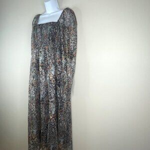 O.P.T. Smocked Cottagecore Renn Faire Maiden Midi Dress Medium Shimmer Floral