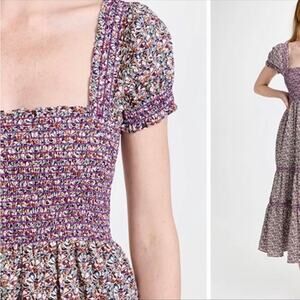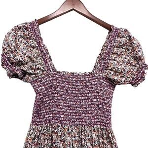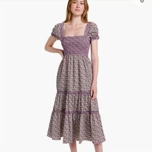 O.P.T Sz S Daphne Tiered Smocked Bodice Pocket Midi Dress Purple Cottagecore