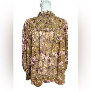OPT x Anthropologie Semi Sheer Smocked Floral Blouse Pink and Green Size L