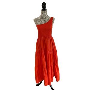 O.P.T. Milada Smocked One Shoulder Midi Dress with Pockets in Poppy Red Size M
