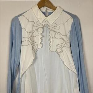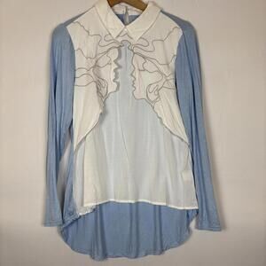 OPi Blue and white Embroidered Layered Blouse with Collar Size: Medium
