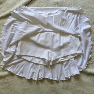This white mini skirt features a playful skater style with a high-low pleated hem, perfect for casual or resort wear. Its lightweight fabric and high waistband offer comfort and a flattering fit, making it a versatile addition to your wardrobe.