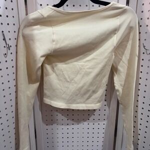 OQQ Ribbed Long Sleeve Cropped Top Cream M Scoop Neck
